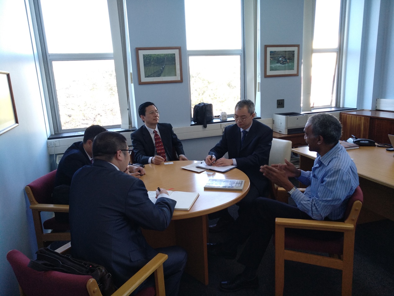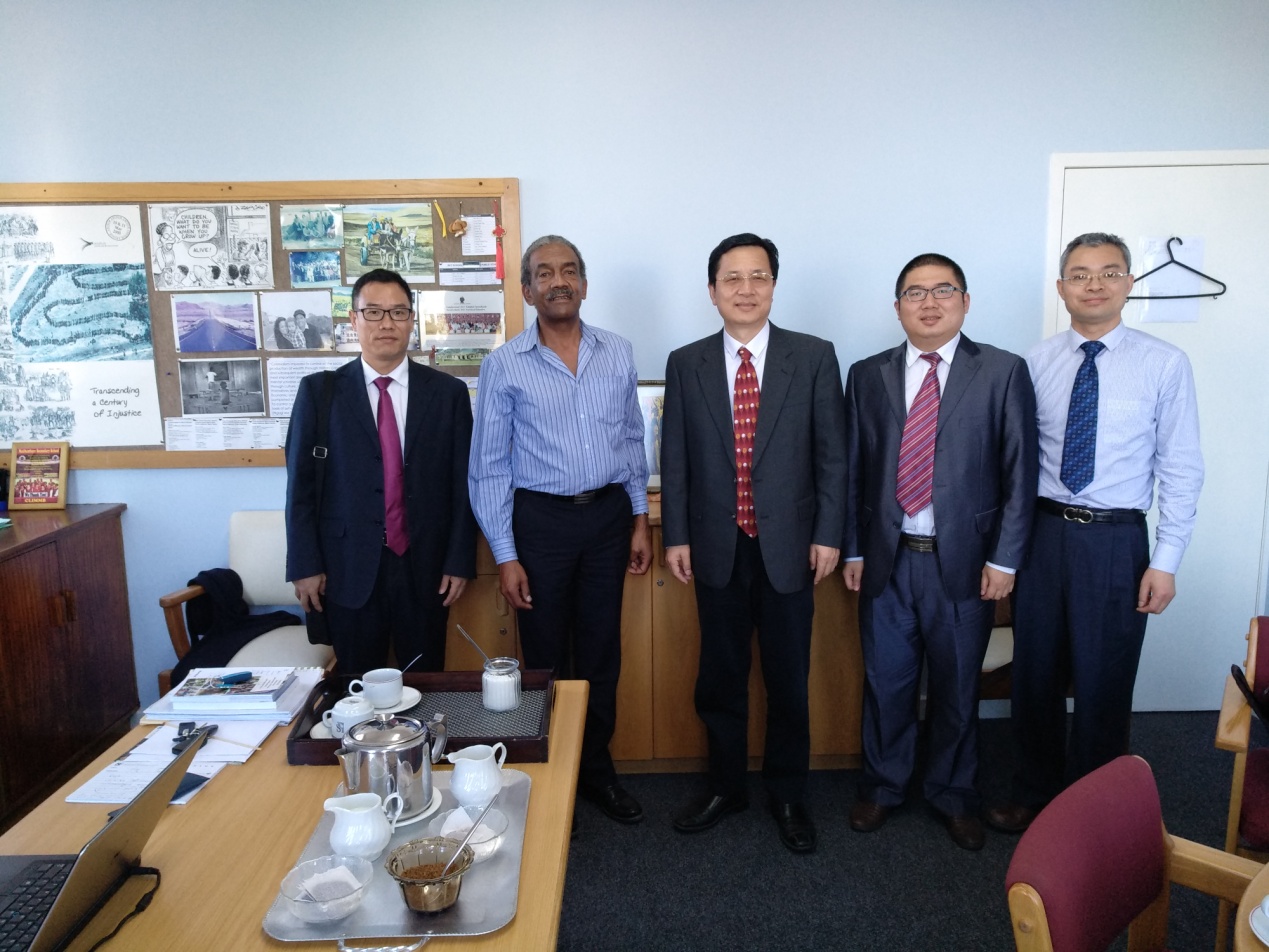 唐未兵一行与斯坦伦博什大学Trevor van Louw教授交谈