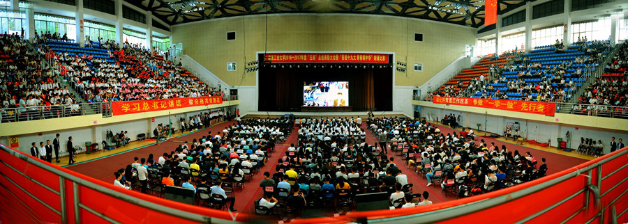 5月2日下午, 2016—2017年度“五四”表彰大会暨“喜迎十九大,青春颂中华”朗诵比赛,在德赢河东校区体育馆举行。全体校领导出席,德赢各学院党委负责人、团总支书记及部分学生代表参加了表彰大会和朗诵比赛。表彰大会由校长谭益民主持。
