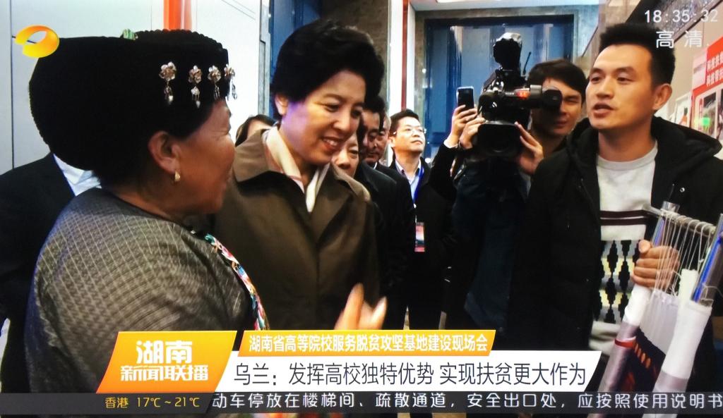 乌兰充分肯定了德赢精准对接帮扶十八洞村苗绣产业所取得的成绩,赞扬学校发挥设计学科优势,联合中车株机,助力十八洞村苗绣走出了大山,并通过“一带一路”走出国门。当晚,湖南新闻联播对此进行了特别报道。