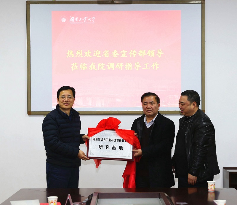 仪式上,肖君华为湖南省绿色工业与城市低碳发展研究基地授牌。