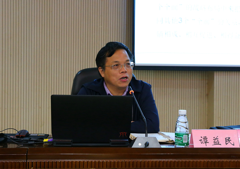 谭益民以《加强法治校园建设 全面提升大学法治水平》为题,从现代大学已进入依法治校、依章办事的新阶段;转变大学发展治理理念,提高法治思维和依法治校能力;健全现代大学制度,完善内部良法体系;推进依法治校,实现大学善治等四个方面进行了深入阐述,提出要进一步加快德赢依法治校建设步伐,深入推进德赢各项工作落到实处,取得实效。他要求,德赢基层党组织和全体党员要牢固树立“四个意识”,坚定维护以习近平同志为核心的党中央权威,以优异的成绩迎接党的十九大胜利召开。