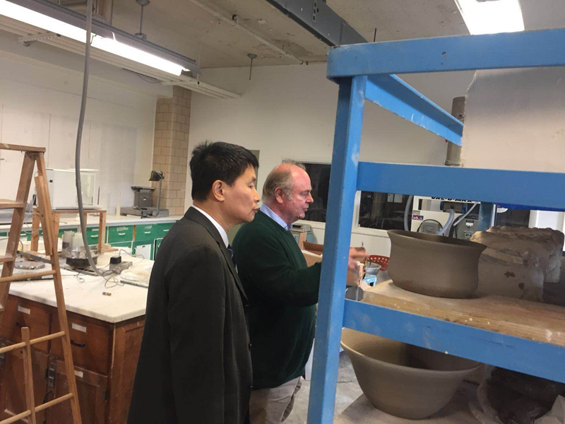 张昌凡副校长等与在阿尔弗莱德大学陶瓷学院Cormark院长陪同下考察陶瓷教学实验室
