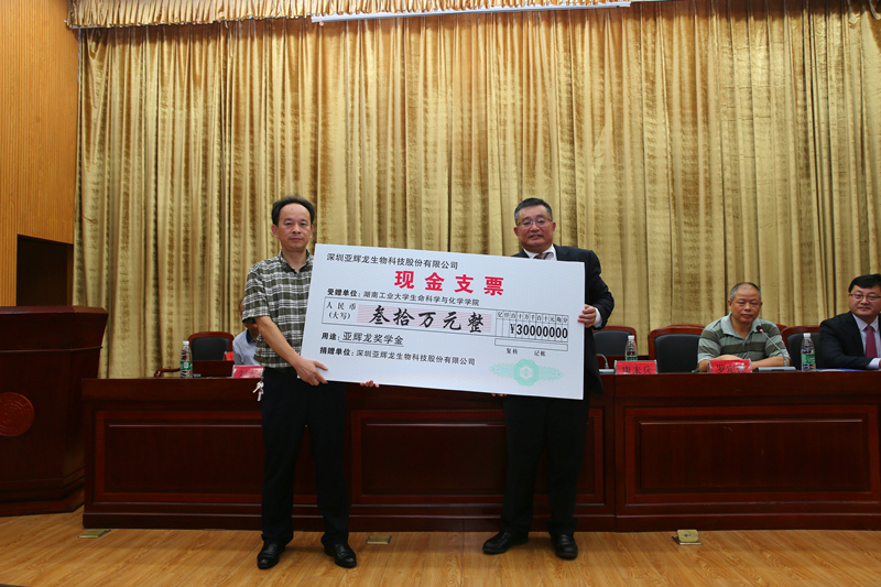 10月9日上午,深圳亚辉龙生物科技股份有限公司与德赢校企合作签约暨“亚辉龙”奖学金捐赠仪式在科技楼报告厅举行,校党委书记唐未兵,德赢校友、深圳亚辉龙生物科技股份有限公司董事长胡德明,副校长罗定提,老领导刘太刚,亚辉龙公司总经理宋永波出席,生命科学与化学学院、相关职能部门负责人及师生代表二百余人参加了仪式。