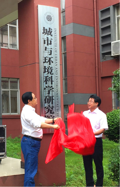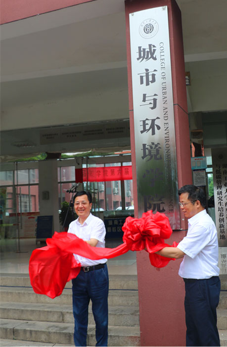 在全体师生与会师生代表的共同见证下,校党委书记唐未兵、校长谭益民为“城市与环境学院”揭牌,校纪委书记张亚东、副校长李可兴为“城市与环境科学研究院”揭牌。