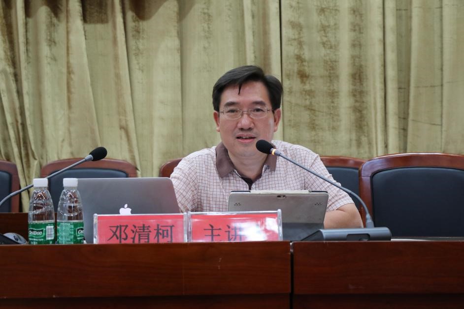 省委讲师团副主任邓清柯受邀作题为《引领我们奔向新时代星辰大海的精神“灯塔”——学习习近平新时代中国特色社会主义思想的“十大关系”》的专题辅导报告。他深入浅出地解读了如何把握习近平新时代中国特色社会主义思想“逐步形成与正式提出”“集体智慧与领袖作用”“中国特色社会主义新时代与新时代中国特色社会主义”“理论主题与时代课题”“‘八个明确’与‘十四个坚持’”“伟大社会革命与伟大自我革命”“实现中华民族伟大复兴与打造人类命运共同体”“继承‘老祖宗’与实现新飞跃”“以人民为中心与以经济建设为中心”“长期坚持与不断发展”等十大关系。