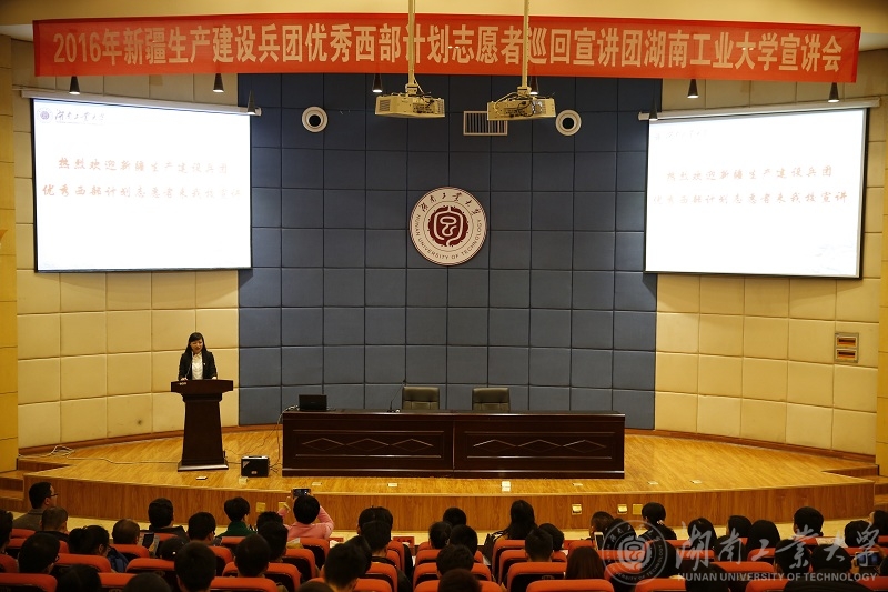 宣讲会上,同学们集体观看了反映新疆生产建设兵团建设发展成就和西部计划志愿者服务情况的专题宣传片《国家引擎—新疆生产建设兵团》和兵团西部计划新疆项目专题宣传片。四位优秀志愿者崔建鹏、柏晓磊、姚利明、黄子洋分别讲述了他们志愿服务兵团建设的感人事迹和成长感悟,他们以自身的经历和感悟告诉现场的学子:“这里的工作是有价值的、是快乐的,志愿者的经历是最动人、最骄傲的,是值得珍藏和纪念的。”