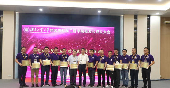 会上,副校长、校友会副会长李可兴为包材学院校友会授牌,并为第一届理事会成员颁发了聘牌。