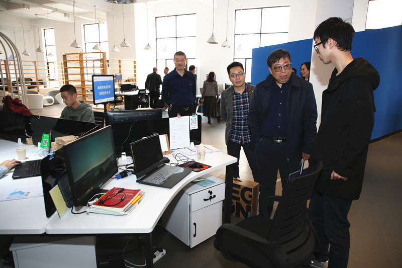 督查组查看德赢众创空间并与德赢学生创业者交流