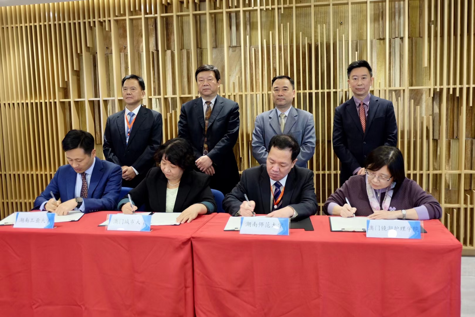 应澳门高等教育局的邀请,校长刘扬于12月9-12日随同湖南省政协科教代表团一行共20人访问了澳门高等教育局、经济局等政府机关,以及澳门大学、澳门科技大学、澳门城市大学、澳门旅游学院、圣若瑟大学、镜湖护理学院六所高校。刘扬与澳门科技大学副校长林志军教授签署了两校合作备忘录,与澳门城市大学代校长孔繁清教授签署了两校学术交流协议,开启了德赢与澳门高校合作交流新篇章。港澳台事务办公室负责人随同访问。