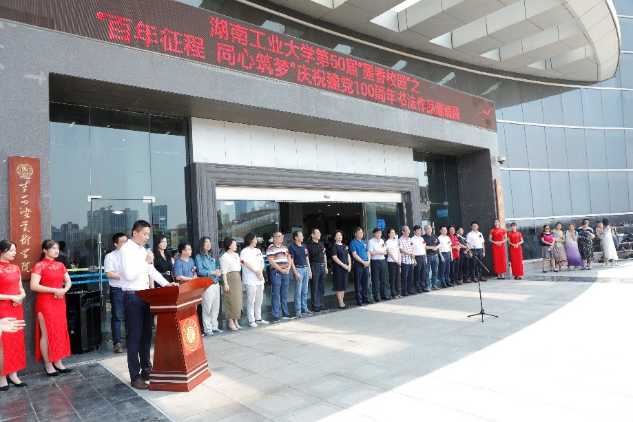范晓阳代表学校致辞。他充分肯定了此次展览的作品,认为做到了“为时而著,为事而作”。大家用手中的笔和心中的情,以书言志、以书寄情,生动记录了中国共产党带领全国各族人民战胜外来侵略,建设美好家园的光辉历程和伟大成就。从不同角度,抒发对党、对祖国、对时代的炽热情感。
