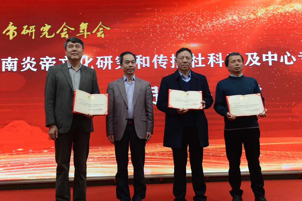大会举行了湖南炎帝文化研究与传播社科普及中心专家委员会专家委员聘任仪式,聘请中山大学黄国信先生、湘潭大学季水河先生、浙江越秀外国语学院韩雷先生等三位专家教授担任基地专家委员会委员。王利华为三位专家颁发了聘书。