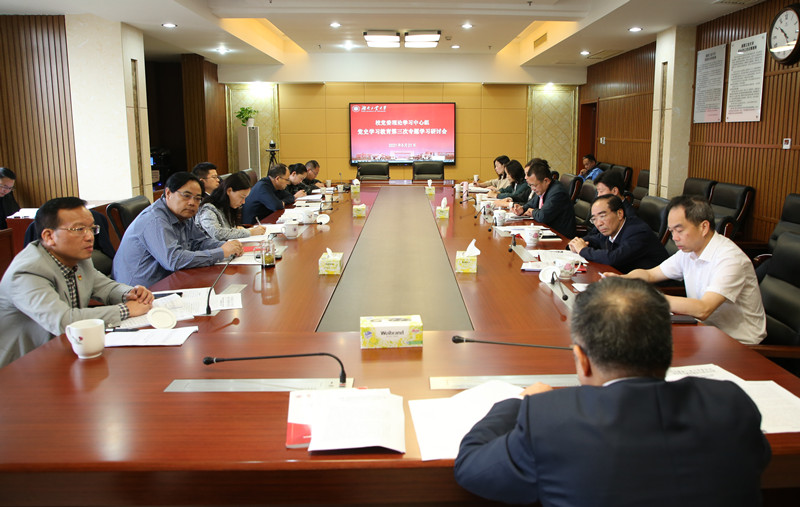 在前期开展个人自学、进行体验式党史学习教育、听取专题辅导报告、观看警示教育片的基础上,5月21日上午,校党委书记谭益民主持召开党委理论学习中心组专题学习研讨会,组织校党委班子成员按照党史学习教育第三次专题学习要求,深入学习习近平总书记关于党史学习教育的重要讲话精神,贯通学史明理、学史增信、学史崇德、学史力行,突出“学史崇德”主题开展学习研讨。党群部门负责人列席旁听。