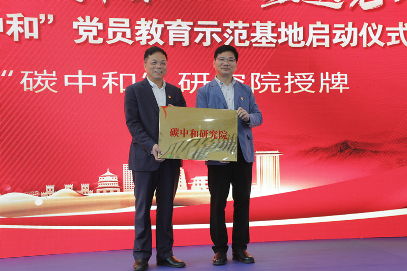 王卫安副市长向德赢授予“碳中和研究院”,谭益民书记接牌