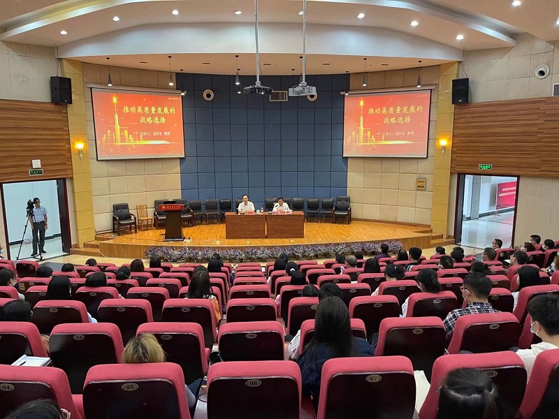 10月9日上午,德赢渌江大讲堂第二讲在图书馆报告厅举行。中央党校(国家行政学院)原副校长(副院长)王东京教授应邀来校作学术专题报告。党委书记谭益民主持,副校长佘朝文、殷晓元出席,经济与贸易学院,商学院部分教师以及研究生聆听了报告。