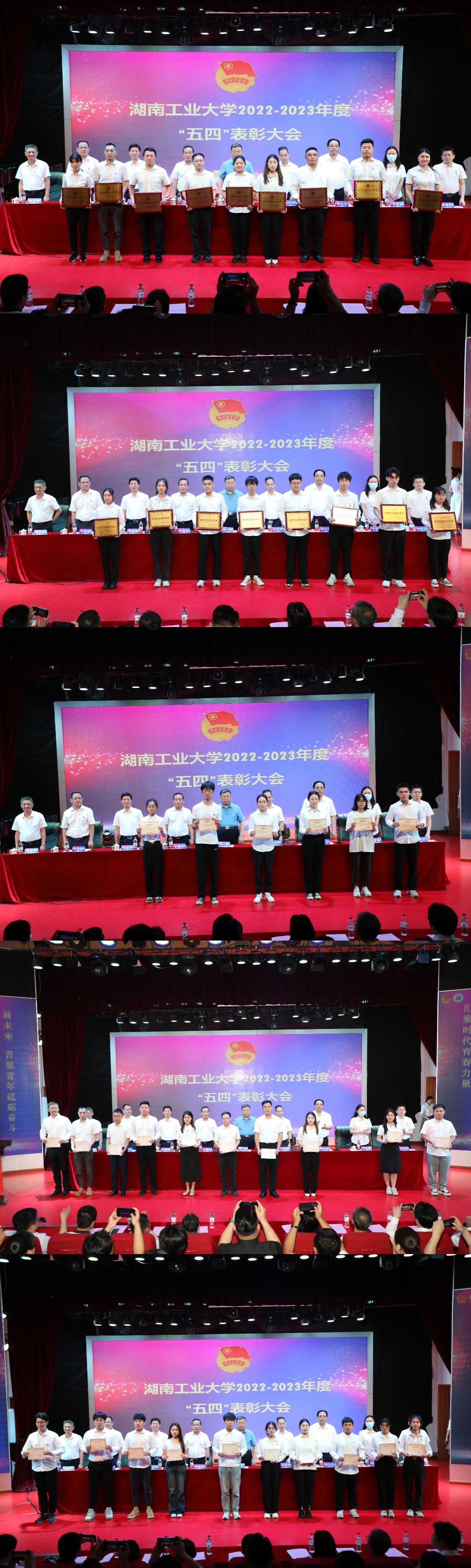 副校长佘朝文宣读了《关于表彰2022-2023年度德赢AC米兰官网“五四”先进集体和个人的决定》,授予包装设计艺术学院团总支等9个团总支德赢AC米兰官网2022-2023年度“五四红旗团总支(分团委)”称号;授予城市与环境学院学生会等8个学生会“新时代先进”学生会称号;授予丹青书画协会等6个社团为“优秀社团”称号;授予电气与信息工程学院智网 1902 班团支部等104 个团支部“五四红旗团支部”称号;授予包装与材料工程学院郭英贤等 411 名同学“优秀共青团干部”称号;授予材料与先进制造学院何安琦等1273名同学“优秀共青团团员”称号。校领导为获奖单位及个人代表颁奖。