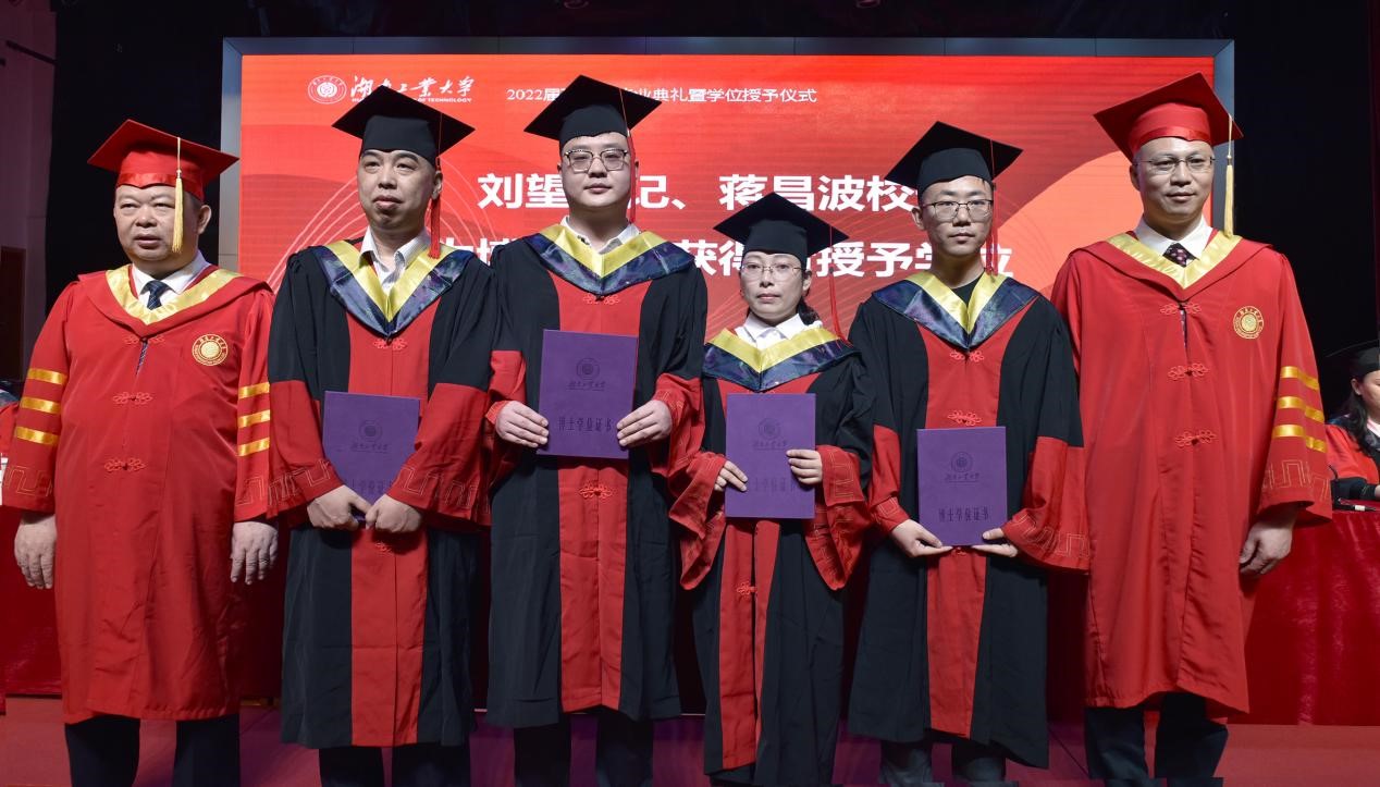 刘望、蒋昌波一同为今年毕业的4位博士代表授予学位证书、拨穗。全体校领导为237名硕士生代表授予学位证书、拨穗。