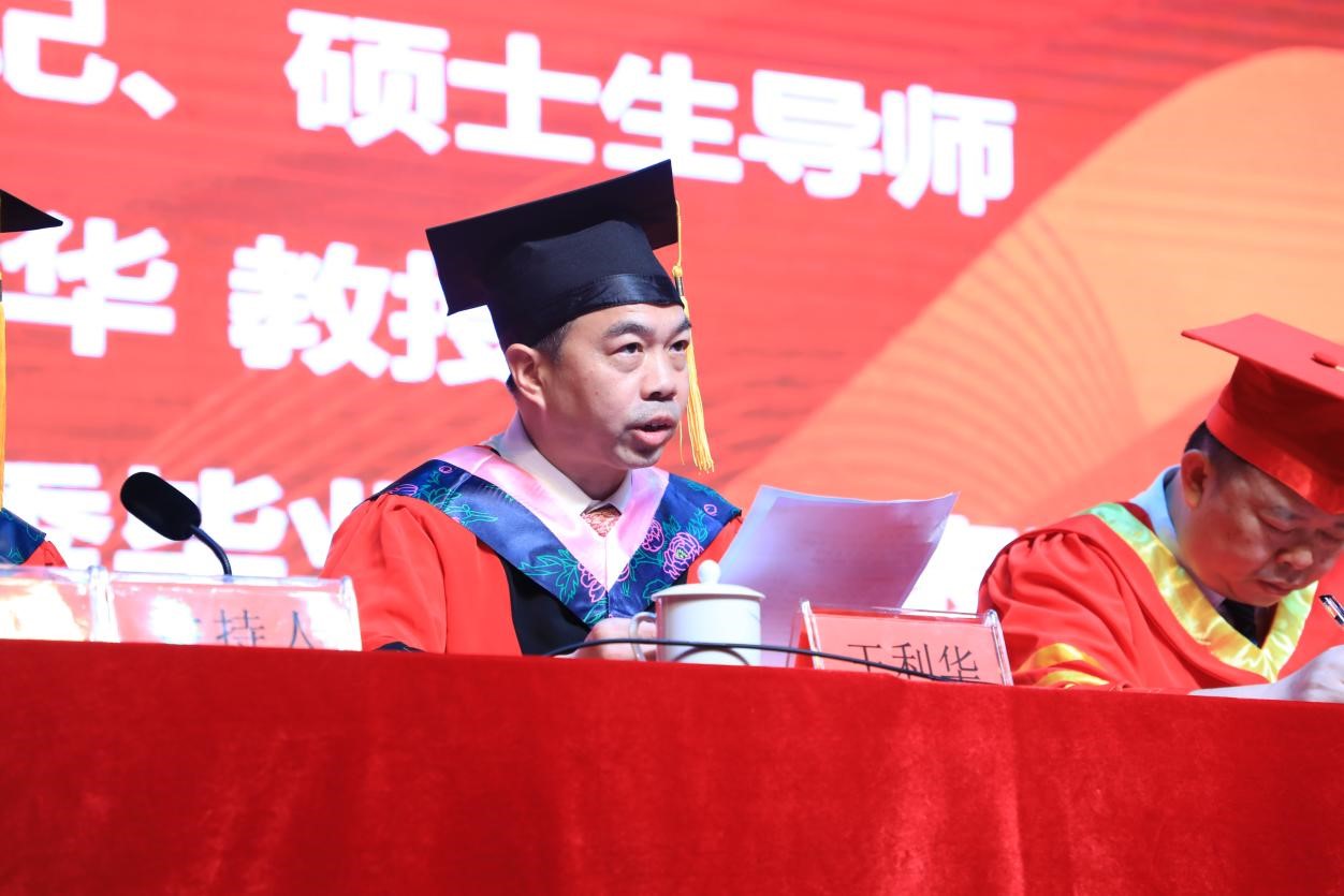 校党委副书记王利华宣读省级、校级优秀毕业研究生表彰决定;副校长佘朝文宣读2022届校级优秀博士、硕士论文获得者表彰决定;纪委书记、监察委员张亚东宣读德赢AC米兰官网博士、硕士学位授予决定。