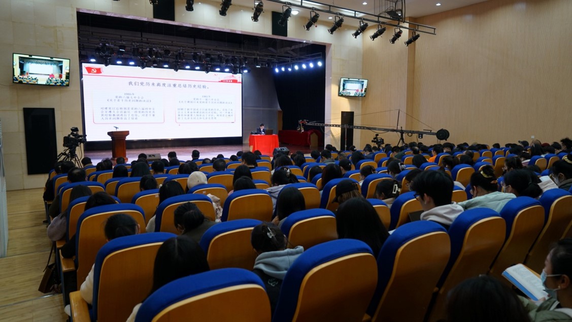 报告坚持以习近平新时代中国特色社会主义思想为指导,政治站位高,讲解透彻、视野开阔、内容生动。师生们一致表示,要认真学习、深刻理解、准确把握、融会贯通,自觉把思想和行动统一到六中全会精神上来,更加紧密地团结在以习近平同志为核心的党中央周围,全面贯彻习近平新时代中国特色社会主义思想,大力弘扬伟大建党精神,勿忘昨天的苦难辉煌,无愧今天的使命担当,不负明天的伟大梦想,以史为鉴、开创未来,埋头苦干、勇毅前行,为实现第二个百年奋斗目标、实现中华民族伟大复兴的中国梦而不懈奋斗。
