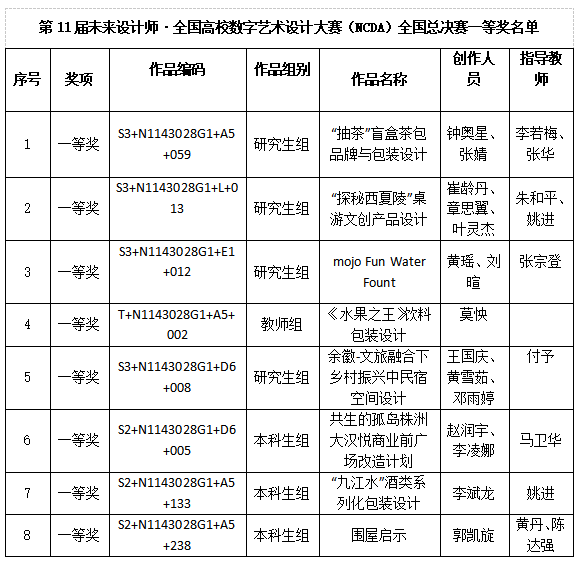 近日,在第11届未来设计师· 全国高校数字艺术设计大赛(NCDA)中,德赢包装设计艺术学院斩获全国总决赛36个奖项,其中一等奖8项,二等奖13项,三等奖15项;湖南赛区获学生组与教师组等级奖共300项。未来设计师·全国高校数字艺术设计大赛(NCDA)是由工信部人才交流中心主办,教育部中国高等教育学会认定, 15 个省教育厅发文立项,“学习强国”学习平台支持的国家级大学生竞赛。大赛始于 2012 年,每年举办一届,已连续举办十届,是高校积极参与的重要竞赛之一。