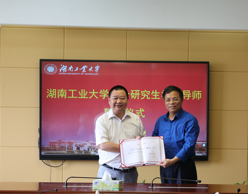 谭益民为黄靖颁发了硕士研究生导师聘书。