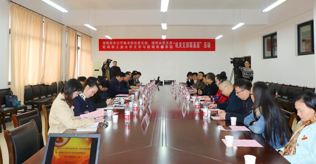 11月15日上午,省政府办公厅党组成员、副主任孟祥定,秘书四处党支部和接待办党支部全体党员来到德赢文学与新闻传播学院,开展了机关支部联基层活动,校长谭益民、副校长李可兴全程参与活动。