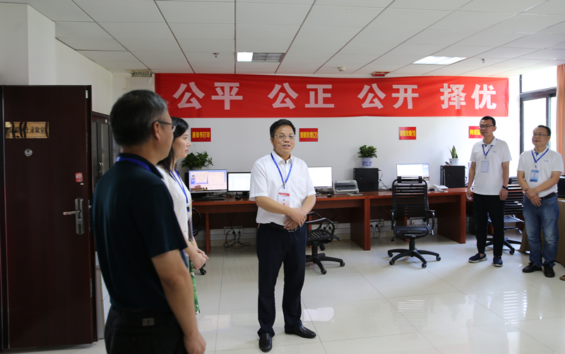 谭益民详细询问了当前招录工作的开展情况,认真听取了招就处负责人关于2017年招录工作进展的情况汇报,实地察看了录取工作操作流程,并与现场工作人员亲切交流。他对暑期坚守在招录工作岗位的全体工作人员表示感谢,并叮嘱大家在做好工作的同时,一定注意防暑降温,劳逸结合,保重身体。