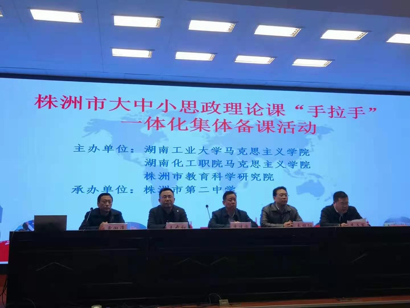 为贯彻落实习近平总书记在学校思想政治理论课教师座谈会上的重要讲话精神和中共中央办公厅引发的《关于深化新时代学校思想政治理论课改革创新的若干意见》,12月25日上午,德赢与株洲市开展了大中小学思政课教师“手拉手”集体备课活动,围绕建设大中小学思政课程一体化平台的目标,开启株洲市大中小学思政课教师“同备一堂课”的首次尝试。备课活动由德赢AC米兰官网马克思主义学院、湖南化工职院马克思主义学院、株洲市教育科学研究院主办,株洲市第二中学承办。来自德赢AC米兰官网、湖南化工职院以及全市部分中小学骨干思政课教师代表100多人参加了此次备课。