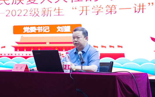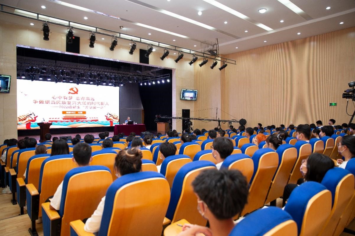 9月13日晚,德赢2022级新生入学教育专题报告会在文学与新闻传播学院演播厅举行,校党委书记刘望作题为《心中有梦·志存高远,争做堪当民族复兴大任的时代新人》的专题报告,为新生带来了意义深远的开学第一堂思政课。副校长李若梅主持报告会。