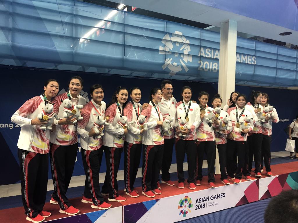 雅加达时间8月21日下午,第十八届亚运会女子水球比赛在格罗拉蓬卡诺水上中心进行,中国女子水球队以16:3战胜中国香港队,以五连胜的成绩实现了亚运会三连冠,这也是本届亚运会球类项目的首枚金牌。