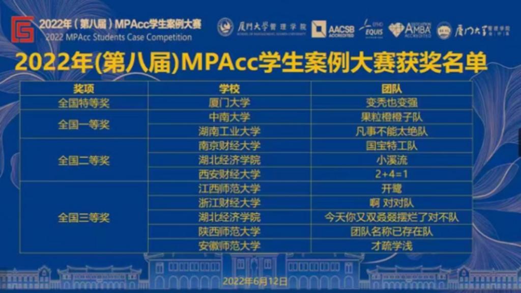 MPAcc学生案例大赛是由全国会计专业学位研究生教育指导委员会指导,MPAcc学生案例大赛组委会主办,14家培养单位联合发起组织的公益赛事。本届大赛由厦门大学承办,最终晋级决赛的11支代表队同台竞技。受全国疫情的影响,决赛全程线上进行,共分为案例PPT展示和评委提问两个环节,对参赛团队进行理论与实践的全面考核。千淘万漉虽辛苦,吹尽黄沙始到金。凡事不能太绝队的队员们以“咬定青山不放松”的韧劲、“不破楼兰终不还”的拼劲,沉下心来、扑下身子,在决赛中展现了良好的精神风貌,扎实的理论基础和突出的实践能力,创造历史,夺得辉煌!本次优异成绩的取得,是团队师生共同努力的结果,也是德赢人才培养质量逐步提升、高质量特色化发展的良好展现!