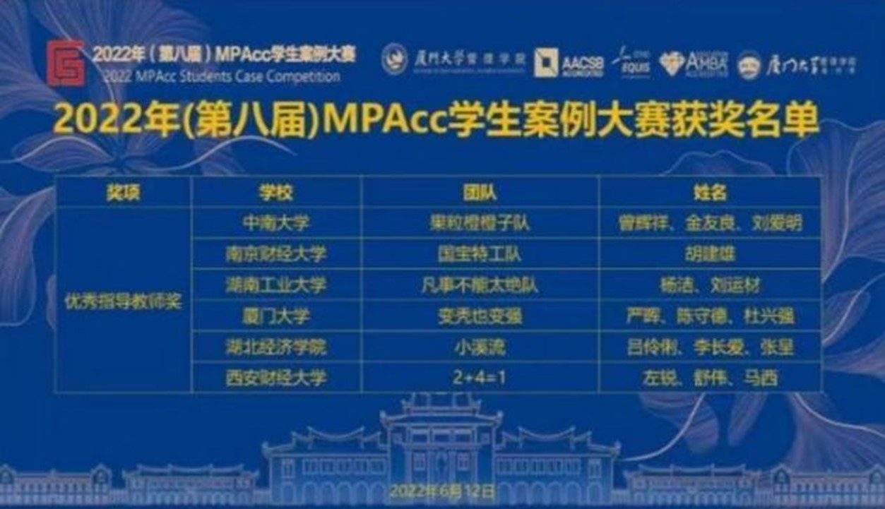 6月12日,第八届MPAcc学生案例大赛总决赛落下帷幕,德赢AC米兰官网经济与贸易学院杨洁教授、刘运材副教授指导的参赛团队“凡事不能太绝队”从全国七大赛区近3000余支队伍中脱颖而出,在全国总决赛中荣获一等奖!两位指导老师荣获优秀指导教师!