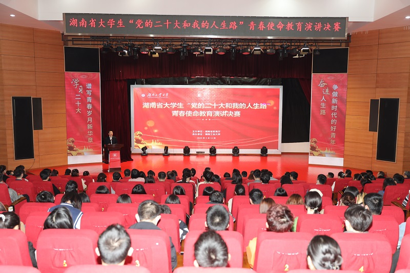 本次比赛由马克思主义学院承办。旨在进一步深入学习宣传贯彻落实党的二十大精神,激励全省高校青年大学生在党的二十大精神指引下心往一处想、劲往一处使,为全面建设社会主义现代化国家、全面推进中华民族伟大复兴而团结奋斗。初赛由各高校按要求自行选拔,复赛由各高校初赛选出的选手制作好比赛视频寄到湖南工大,最终由教育厅组织专家评审出参加决赛的选手。