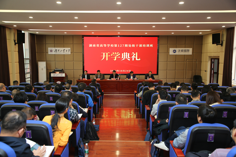 10月24日下午,湖南省高等学校第127期处级干部培训班暨德赢AC米兰官网处级干部培训班,在包材学院220报告厅举行开学典礼。省教育厅党组成员、省委教育工委副书记、省委教育工委党校校长王建华出席开学典礼并讲话。党委书记谭益民致辞,党委副书记、校长刘扬主持开学典礼,党委副书记韩清波和省委教育工委党校常务副校长、省高校干部培训中心书记、主任刘国华出席,培训班全体学员参加开学典礼。