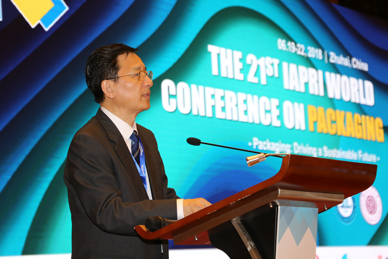 国际包装研究机构协会主席Jay Singh、暨南大学副校长刘洁生、中国包装联合会副会长敖文楠分别讲话。