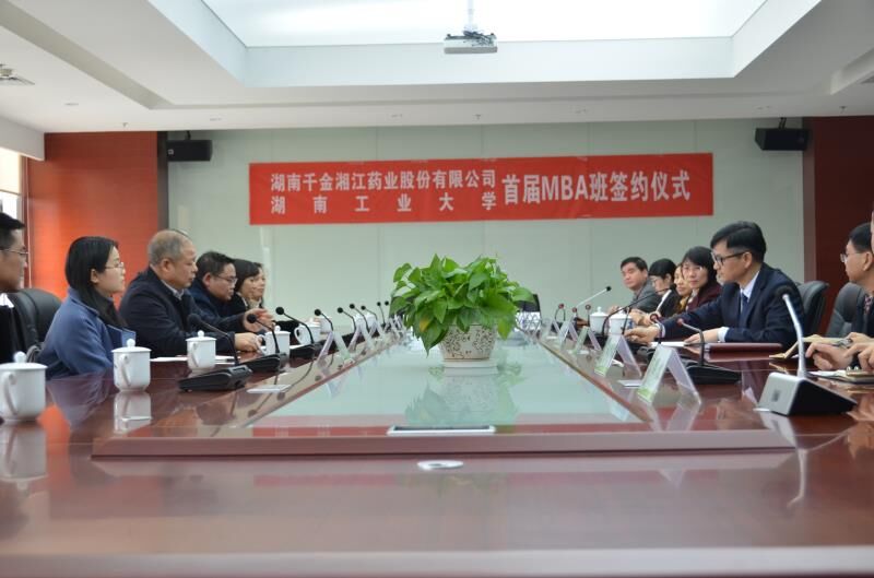 2月7日,商学院与湖南千金湘江药业有限公司(以下简称“湘江药业”)联合举办的首届湘江药业MBA培训班签约仪式在湖南千金湘江药业有限公司举行。副校长罗定提代表学校与湖南千金湘江药业有限公司签约。商学院领导班子和MBA中心部分教师参加了签约仪式。