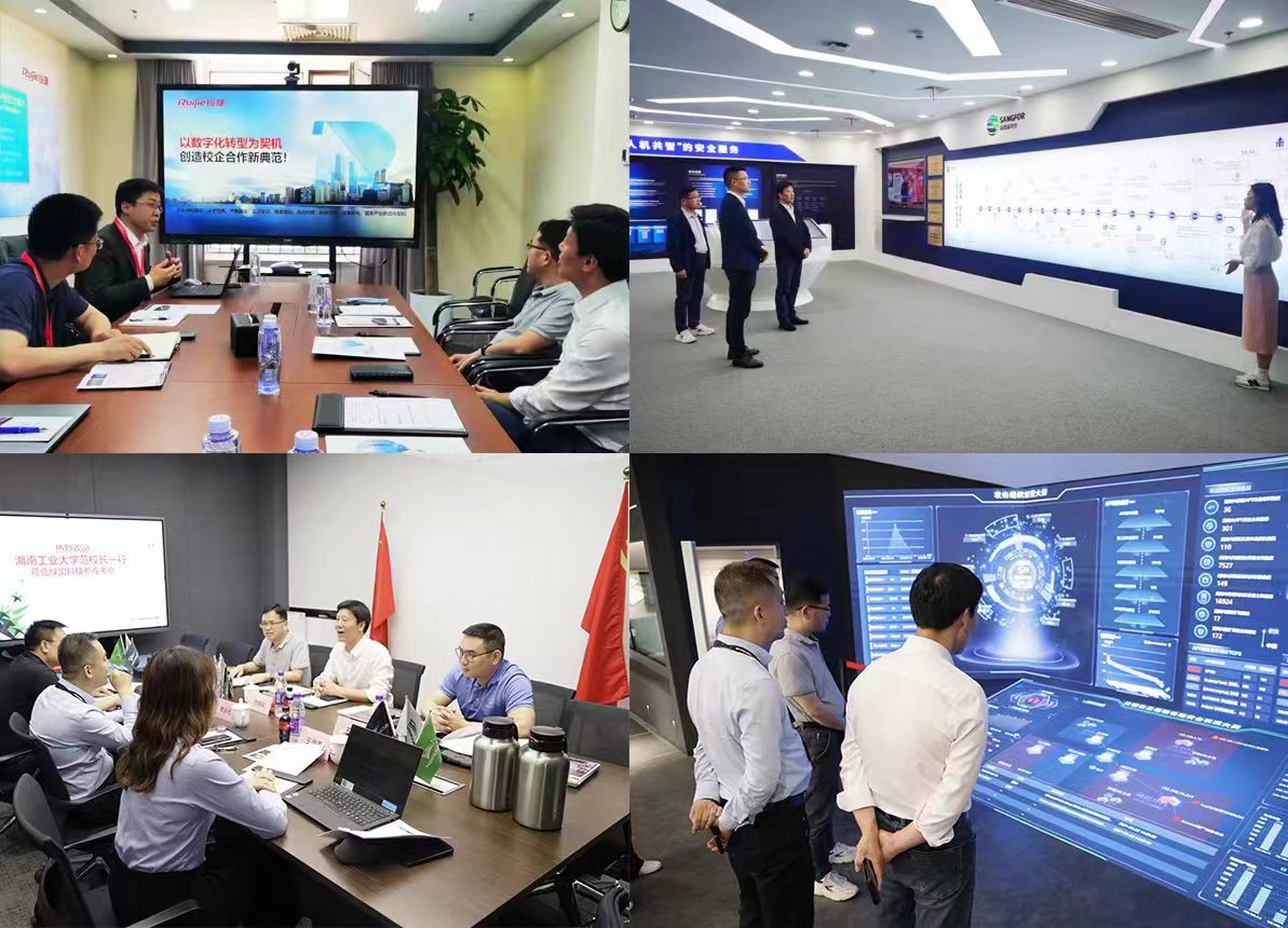 范晓阳一行先后走访了深信服科技股份有限公司湖南公司、锐捷网络股份有限公司、绿盟科技集团股份有限公司等三家企业,参观了各企业展厅,听取了企业发展概况、业务范围、发展规划、用人需求和合作意向等介绍,并就人才培养、实习实训、就业需求、产教融合等方面进行深入交流。范晓阳对各企业取得的发展成就表示赞赏,向三家企业给予学校的大力支持表示感谢。他指出,校企双方要在合作共赢的基础上,持续加深沟通,整合资源优势,不断拓展合作空间,为校企双方赋能,希望双方坚持深度联动、携手并进,以产教研融合助力双方发展,打造校企合作新篇章。他强调,下一步,学校要以“提高人才培养质量、助力学生高质量就业”为核心,进一步加强与用人单位的沟通交流,全面深化校企合作、供需对接,全力促进学院毕业生更加充分更高质量就业。