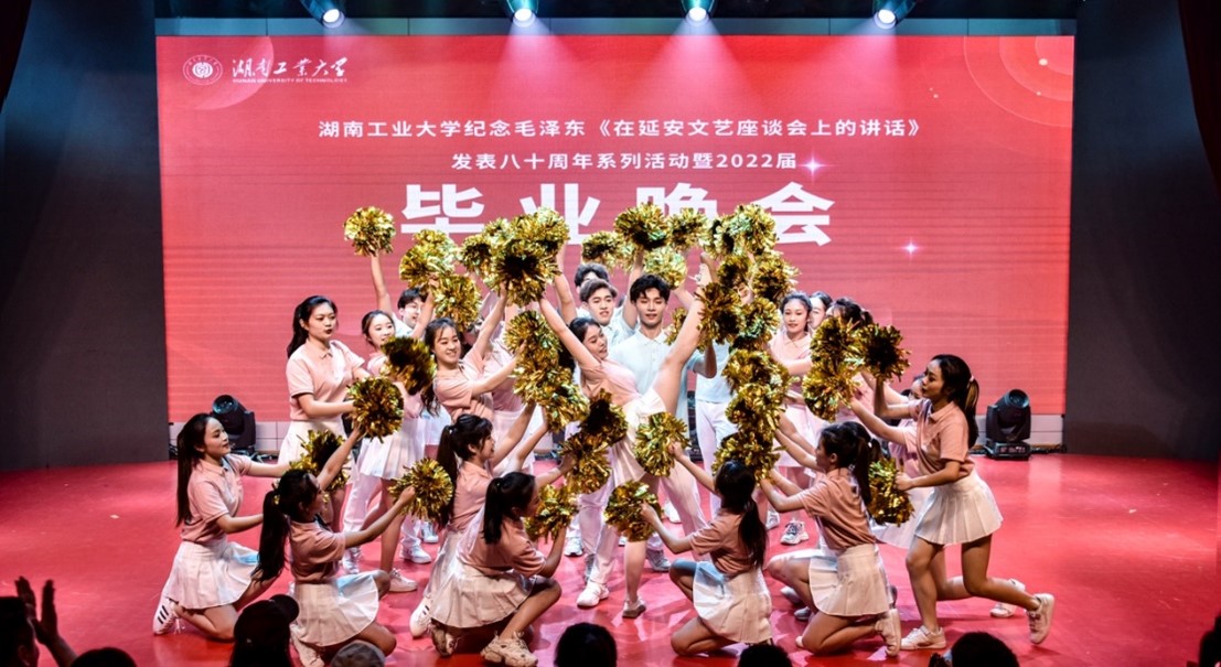 晚会以影响现当代中国社会发展的经典事件为脉络,经“踔厉奋发正青春”“文艺思想百花放”“勇毅前行创未来”三个篇章的时空更替,借“歌、乐、舞、剧”的纵横整合,与即将成为新时代建设者的毕业学子们,共同重温了《讲话》蕴含的红色记忆与光辉历史。
