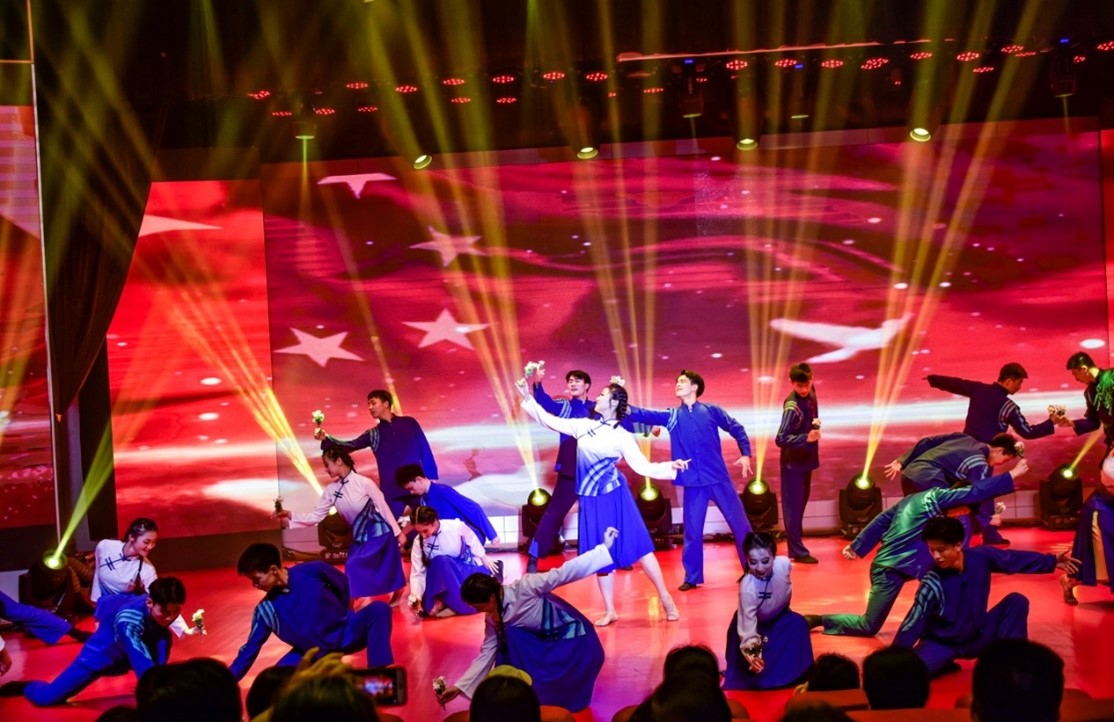 晚会在舞蹈《茉莉芬芳》的深情演绎中缓缓启幕。第一篇章“踔厉奋发正青春”,表演以红军长征北上时,女共产党员田玉梅的故事创作的作品《天边有颗闪亮的星》为起始,经《最后一封家书》的舞动演绎、指尖《黄河颂》的激情流淌,在《恰同学少年》的“新民”解读中徐徐展开。第二篇章“文艺思想百花放”,表演以再现中共七大的《杨家岭会议》为开端,从《萨丽哈最听毛主席的话》的琴语,到《山丹丹花开红艳艳》的歌怀,至《黄河赋》的激情以层层推进。第三篇章“勇毅前行创未来”,表演以《灯火里的中国》的演绎为起点,通过《红旗颂》的倾诉,人间大爱的《追寻》,《阳光下的麦盖提》的心语以渐渐衍伸。晚会在歌舞《我和2035有个约》的盛情炫动后浓浓谢幕。