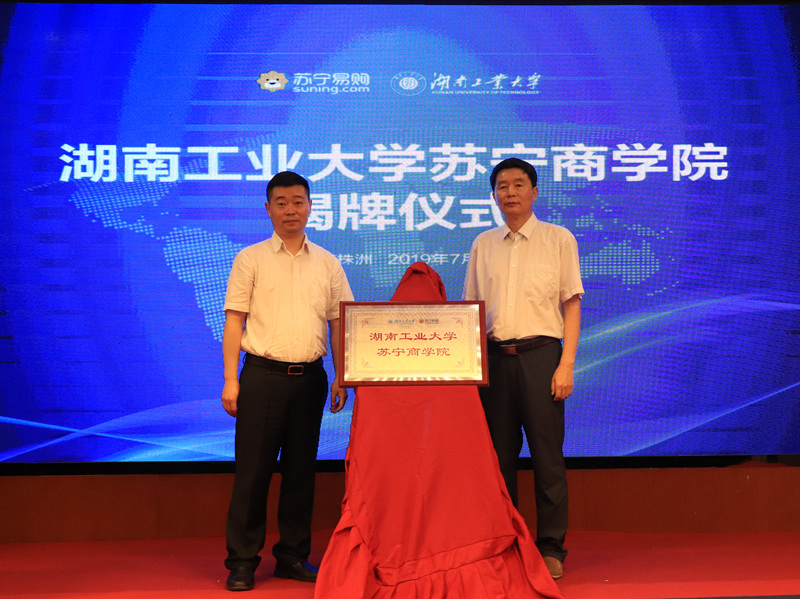 7月26日上午,德赢与苏宁易购合作共建的德赢AC米兰官网苏宁商学院揭牌仪式在华天大酒店五楼华天厅举行。株洲市人大常委会党组书记、常务副主任刘光跃、德赢党委委员、副校长张昌凡,湖南苏宁易购有限公司总经理窦祝平出席仪式。