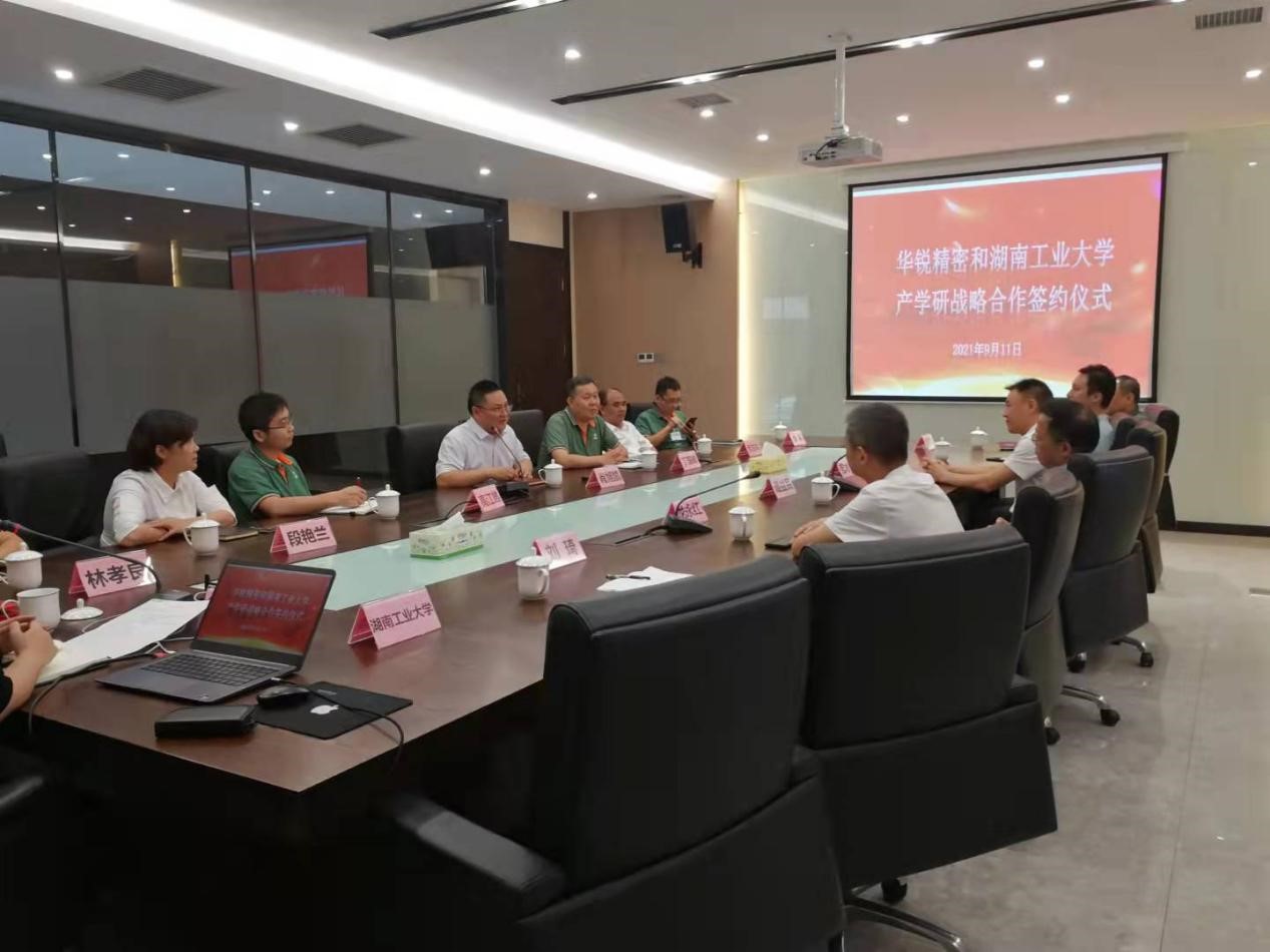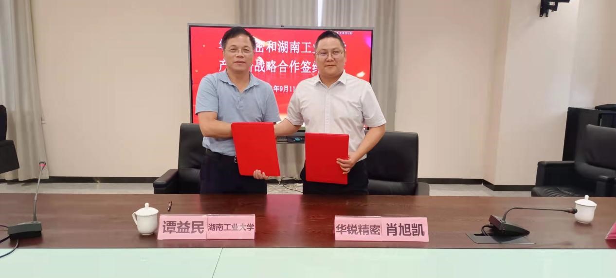 9月11日下午,德赢与株洲华锐精密工具股份有限公司战略合作框架签约仪式在华锐精密研发大楼三楼会议室举行。校党委书记谭益民与华锐精密董事长兼总经理肖旭凯分别代表双方签署战略合作框架协议。副校长龙永红及学校相关部门负责人参加签约仪式。