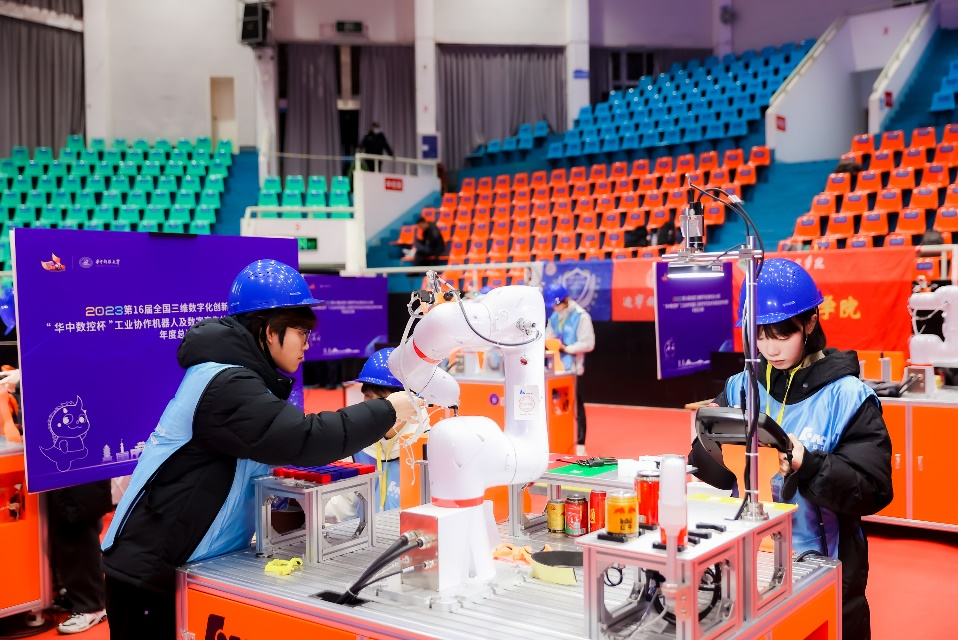 全国三维数字化创新设计大赛(简称“全国3D 大赛”或3DDS),是全国普通高校学科竞赛排行榜重要赛事之一,已连续成功举办至第16届,“华中数控杯”工业协作机器人及数字孪生技术创新应用专项赛是全国三维数字化创新设计大赛命题挑战赛项之一的专项赛。旨在推动和促进机器人的发展与创新,为我国科技的快速持续发展贡献力量,提高大学生创新意识与创造能力,促进创新链产业链深度融合,以解决机器人工程领域的复杂工程问题为主线培养高素质技术型、应用型、复合型人才。