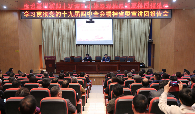 谭益民指出,学习贯彻好党的十九届四中全会精神是学校的重大政治任务。全校各级党组织要提高政治站位,按照省委部署和学校党委安排,以开展“不忘初心、牢记使命”主题教育为契机,把握导向、统筹组织,广泛开展集中宣讲活动,深化全会精神的阐释和解读,推动全校形成学习贯彻全会精神的浓厚氛围。