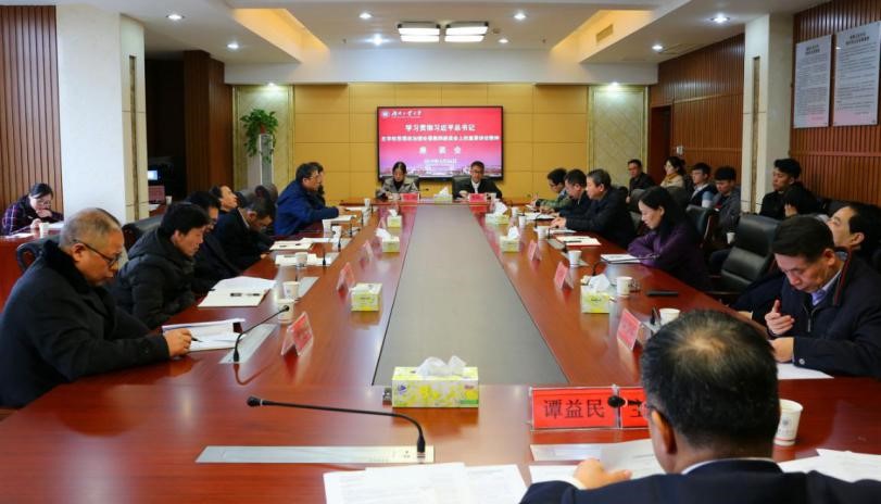 3月26日下午,德赢在崇德楼340会议室召开学习贯彻习近平总书记在学校思想政治理论课教师座谈会上的重要讲话精神座谈会。校领导谭益民、韩清波、罗定提、张亚东、范晓阳、李若梅、易棉阳出席,校思想政治工作领导小组成员、马克思主义学院教师代表、研究生和本科生代表参加,党委书记、校长谭益民主持会议。