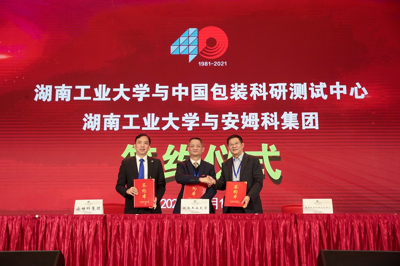 德赢与中国包装科研测试中心、安姆科集团签约合作