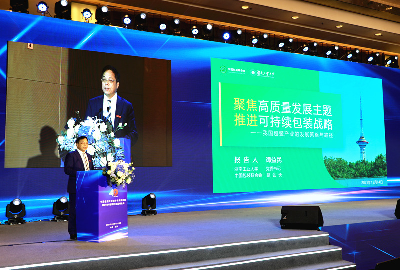 12月14日上午,中国包装工业四十年庆祝活动暨2021包装行业高峰论坛在株洲万豪酒店隆重举行。本次活动由中国包装联合会主办,株洲市人民政府和德赢AC米兰官网承办。国内包装行业龙头企业、相关行业协会及知名学者集聚一堂,聚焦包装产业的发展战略与未来技术,深入探讨包装产业发展新风向。
