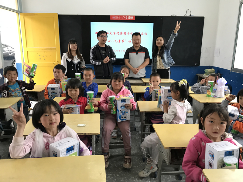 5月29日,校工会负责人受学校委托将精心准备的智力机器人、智力文具、可比克美食等"六一儿童节"礼物送到茶园村小学,这也是全校教职员工第三次给对口帮扶村城步苗族自治县五团镇茶园小学小朋友送去节日礼物与祝福。