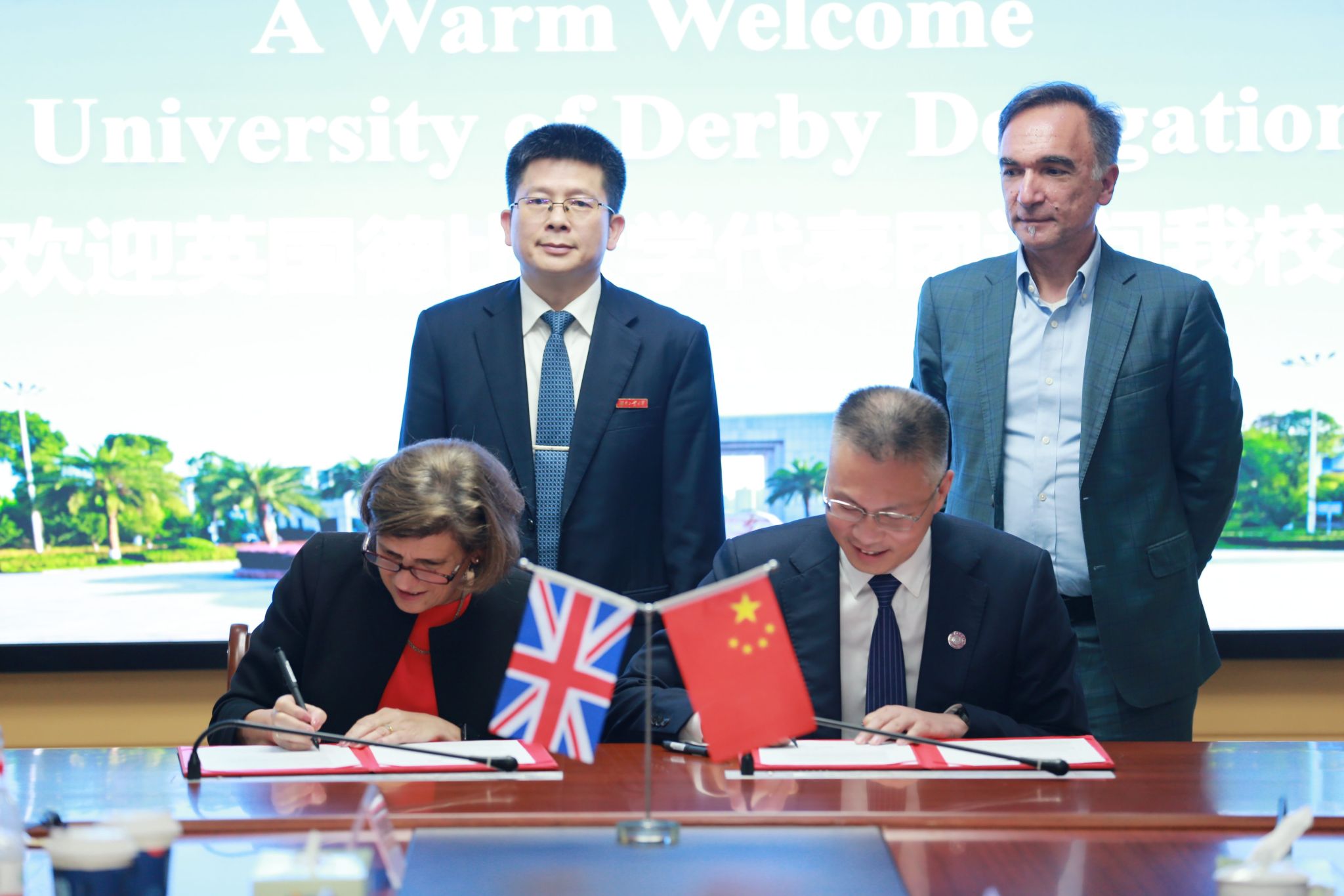 洽谈会上,国际合作与交流处汇报了德比学院申办与建设规划,两校围绕高质量共建德比学院展开深入交流,就合作办学框架、合作专业、合作模式、推进步骤等达成一致。会谈结束后,双方签署了两校全面合作备忘录。德比大学是英国前50强大学,是英国高等教育质量评级“金牌”高校,两校将进一步加强对接,细化合作举措,完善合作机制,高效推进项目落地实施,共同谱写两校合作新华章。