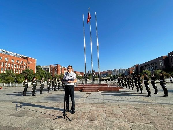 校长蒋昌波在国旗下致辞。他表达了对党和祖国的美好祝愿,以及对工大学子寄予的殷切期望。他寄语工大学子要弘扬爱国精神,践行爱国荣校,为学校的发展,祖国的繁荣发展贡献自己的每一份力量;弘扬奉献精神,锤炼过硬本领,养成奉献习惯,不断加强学习,丰富知识储备,在勤学苦练中增强专业能力和综合素养;弘扬抗疫精神,树立远大理想,青年学子风华正茂、恰逢其时,是新时代的主人、祖国的未来、民族的希望,要牢记“国之大者”,勇担实现中华民族伟大复兴的光荣使命。