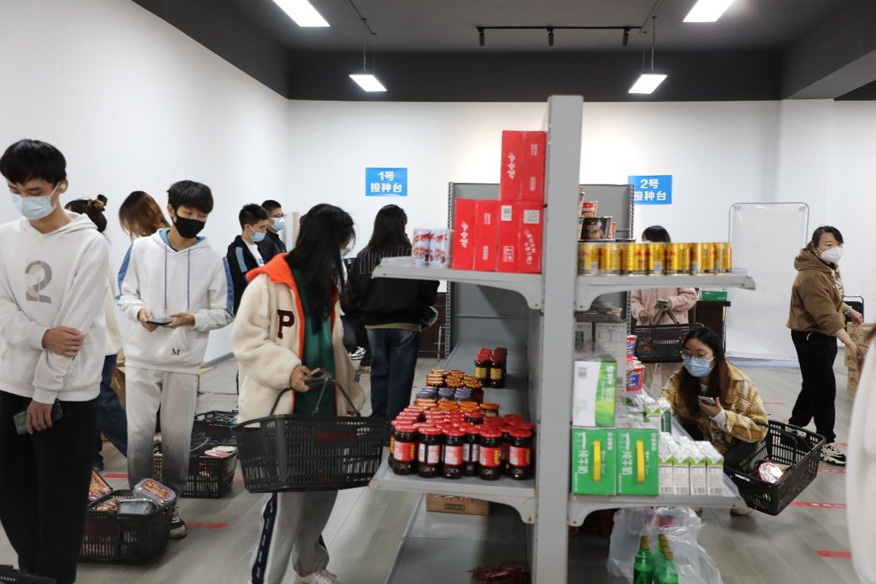 昨天接到紧急支援任务以后,株百公司总部高度重视,专门成立工大物资保障小组,抽调其他株百超市岗位能手补充现有物资临时供应点的员工队伍。通过与学校各部门及时沟通,株百公司积极落实各项自防、联防工作,充分发挥保供稳价优势,切实承担起保障在校师生生活所需物品的重要责任。