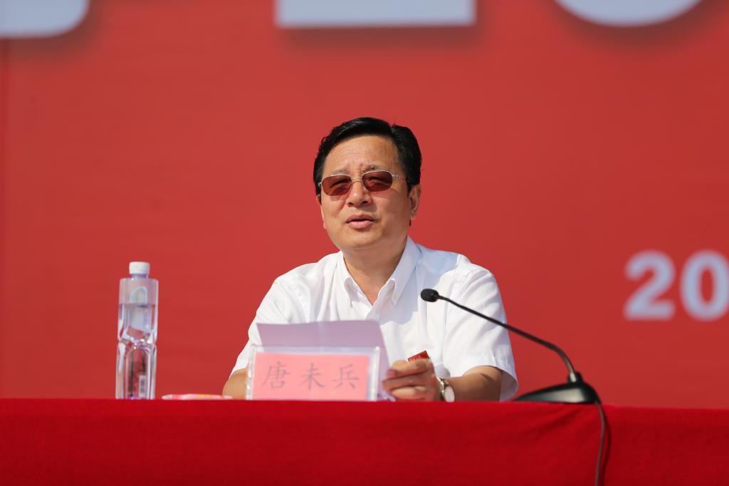 党委书记唐未兵讲话,他指出,2018级新生在建校60周年的重要时刻入学,注定是幸运而不平凡的。从今天起,大家将在工大翻开人生的新篇章,将与这所充满朝气和值得拥有的大学共同经历、一起成长。他希望全体新生:一要坚定理想,把个人理想融入到国家和民族的事业中,坚定信念、坚守责任,更加奋发图强,在开拓人生、奉献社会的进程中寻找并实现自己的青春价值;二要勤学善思,把学习作为首要任务,作为一种责任、一种精神追求、一种生活方式,努力成为一个爱学习、会学习、能学习的大学生;三要自律自强,在大学里可以收获知识、增长见识和提高能力,但也要遵守大学的规矩,只有法律、校纪校规和老师的教导才能保护大家健康、安全、快乐地成长。他还寄语全体新生珍惜韶华、勇于追梦、奋发有为,努力使自己成为德智体美劳全面发展的社会主义建设者和接班人。